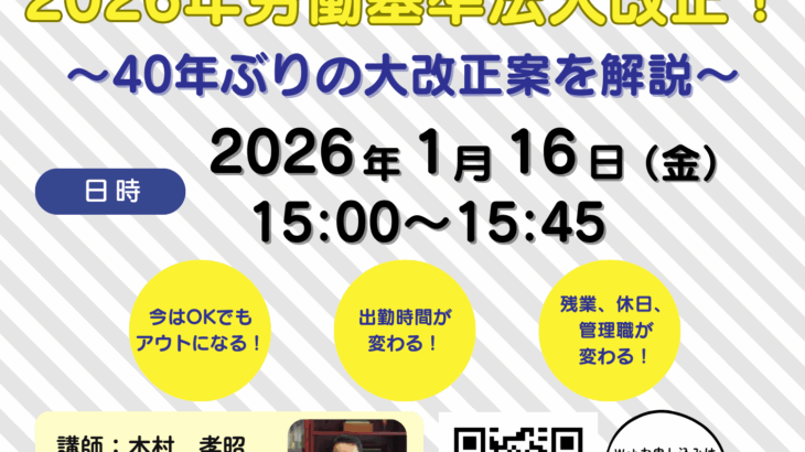 今後の労務管理は、どう変わる?40年ぶりとなる労働基準法の大改正案を、制度の背景から実務への影響、企業が今から備えるべきポイントまで社労士がわかりやすく解説します。 このような方におすすめです■経営者 […]